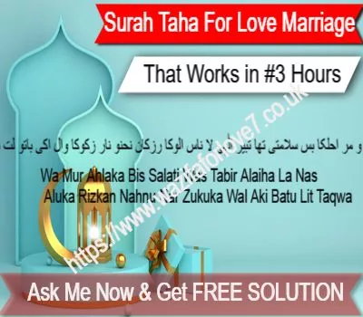 Recite Surah Taha For Love And Marriage Three Times A Day After Namaz And Take Special Care That Before And After Recitation, You Must Read Dawood Sharif 7 times, Thereafter Pray to Allah That For Whatever Purpose You Are Reciting Surah Taha. May It Be fulfilled. If You Follow It with Full Devotion And Dedication, Then Surely You Will Get Success in Your Love And Marriage.